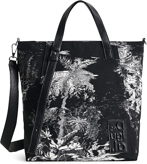 The Desigual Fabric Shopping Bag combines style and practicality in one elegant design. Made from high-quality fabric with a black-and-white tropical pattern, this spacious tote is perfect for everyday use, offering both comfort and versatility with its dual handles and detachable shoulder strap.