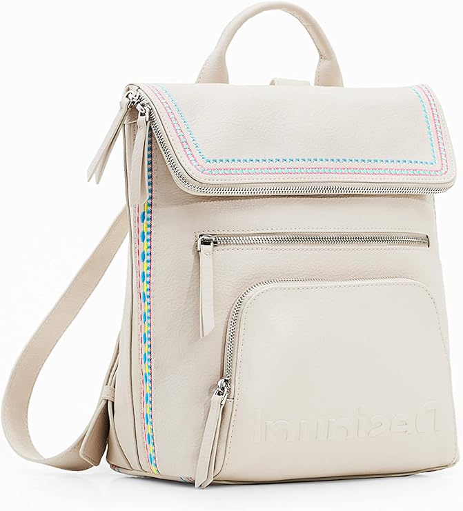 Desigual Women’s Back_Raven_Nerano Backpack – Stylish PU Leather Multi-Pocket Bag (Off-White)