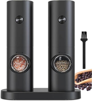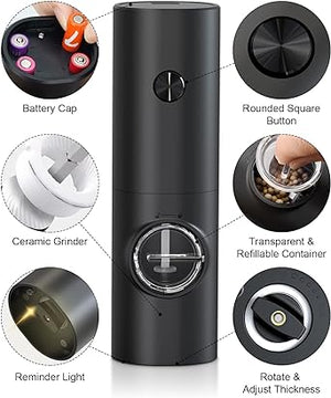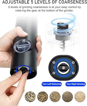 مجموعة مطحنة الفلفل والملح الكهربائية من كوكونست، تعمل بالبطارية وقابلة للتعديل 5 مستويات من مطحنة الفلفل الأسود الخشنة مع حامل، أوتوماتيكية