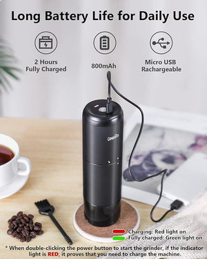 مطحنة القهوة الكهربائية المحمولة من كونيكو: مطحنة القهوة مع بطارية قابلة لإعادة الشحن - مطحنة مخروطية احترافية - بذور القهوة المطحونة جيدًا لمكتب التخييم في الهواء الطلق - أسود
