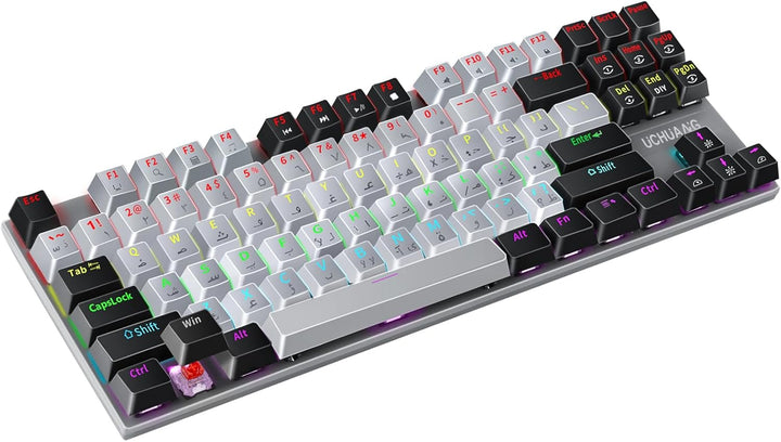 UCHUANG Mechanical Gaming Keyboard – English Arabic Layout, RGB LED Backlit, Hot-Swappable Red Switches, 87 Keys TKL Wired Keyboard for PC & Laptop Gamers