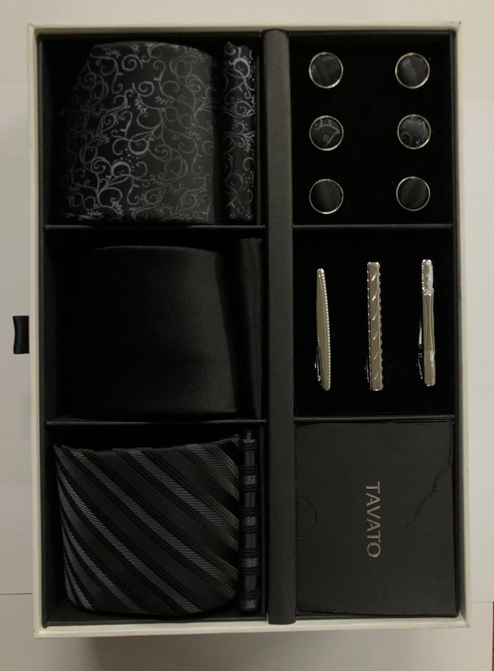 Premium Men’s Gift Tie Set Silky Necktie Pocket Squares Tie Clips Cufflinks For Men, Men's Style 5