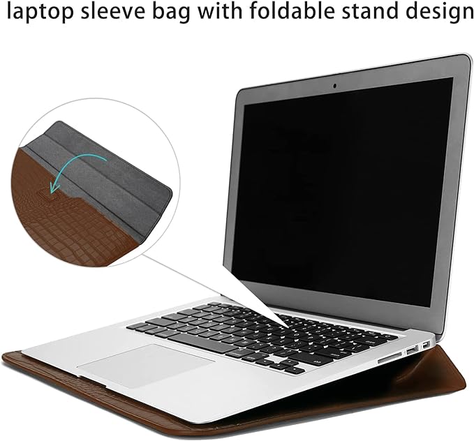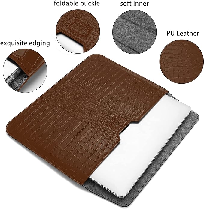حافظة لاب توب MOSISO متوافقة مع ماك بوك اير 13 M2 A2681 M1 A2337 A2179 A1932/Pro 13 M2 M1 A2338 A2251 A2289 A2159 A1989 A1706 A1708، حقيبة بنمط قلاب من جلد البولي يوريثان محبب، بني