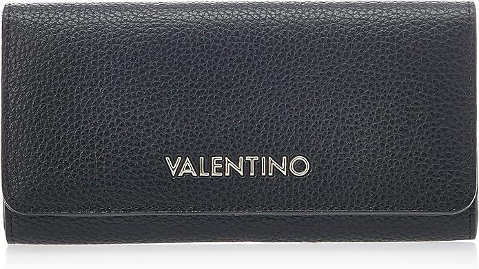 The VALENTINO Alexia Wallet embodies classic elegance and modern practicality. Crafted from high-quality textured faux leather, this sleek black wallet showcases the refined Valentino logo in polished gold-tone hardware. Its minimalist design offers a sophisticated look suitable for any occasion while providing ample storage space for your essentials.