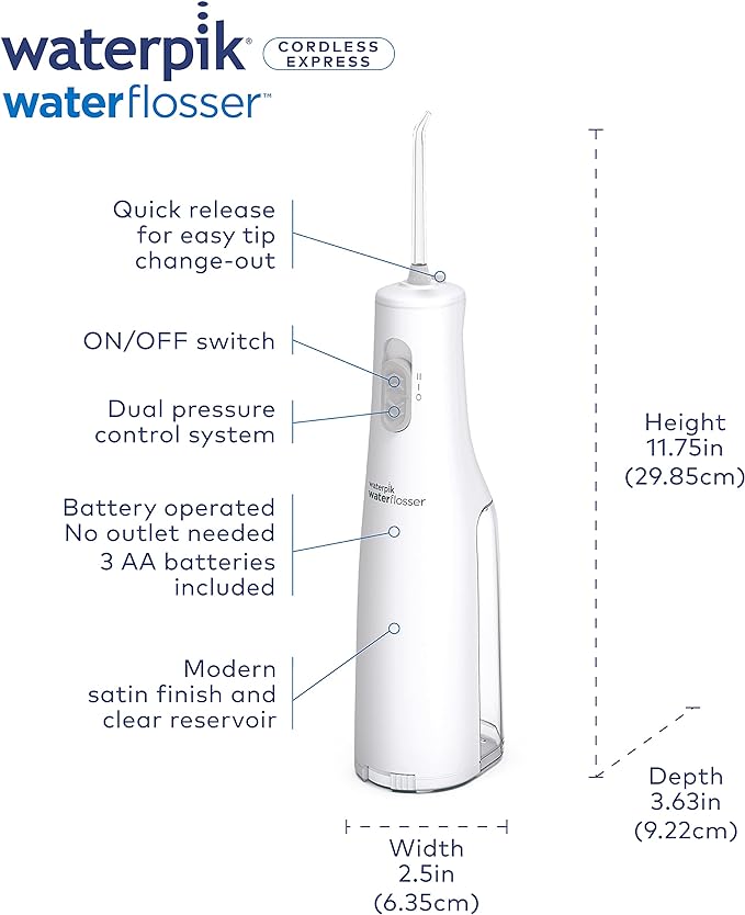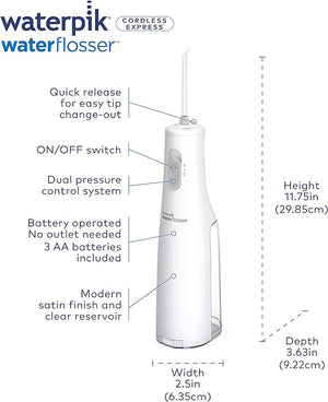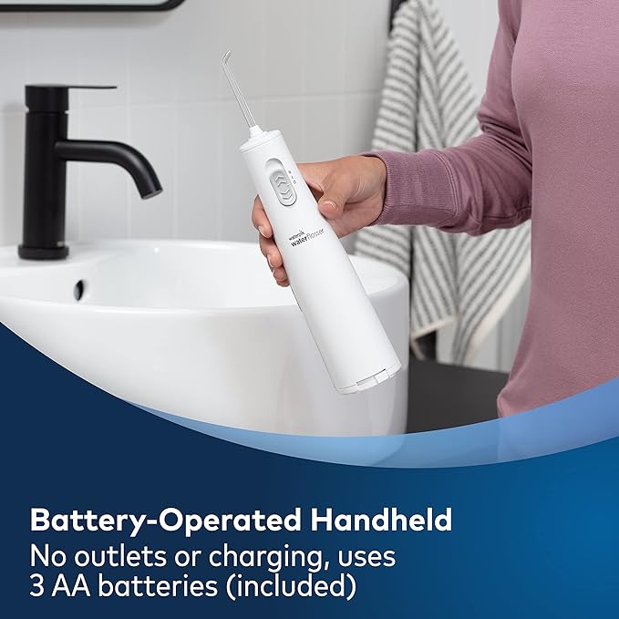جهاز تنظيف الأسنان المائي اللاسلكي من واتربيك، يعمل بالبطارية ومحمول للسفر والمنزل، معتمد من ADA، لاسلكي سريع، أبيض WF-02