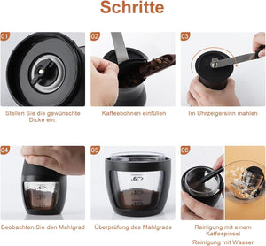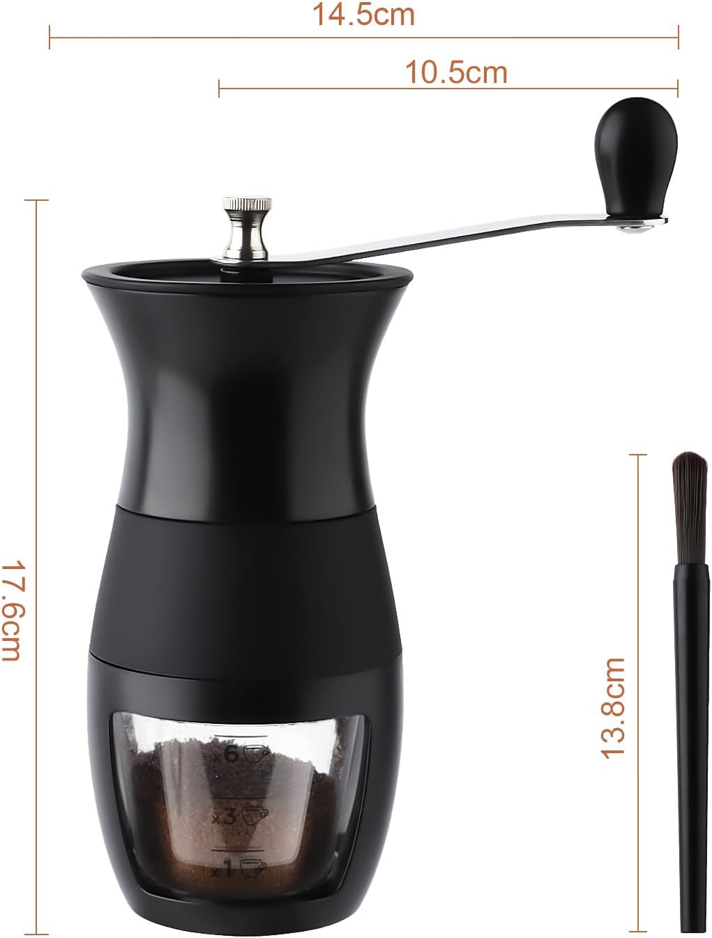 Manual Coffee Grinder with Adjustable Grind Settings – Washable Hand Coffee Mill with Brush for Espresso, French Press & Pour-Over
