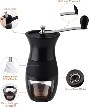 Manual Coffee Grinder, Adjustable Coffee Grinder, Espresso Grinder, Washable, with Coffee Brush, for Grinding Coffee and Storing Ground Coff