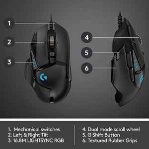 Logitech G502 HERO is a high performance wired gaming mouse built for fast, accurate control. It delivers precise tracking for competitive play and smooth navigation for daily PC use. Designed with an ergonomic shape and customizable controls to match your gaming style.