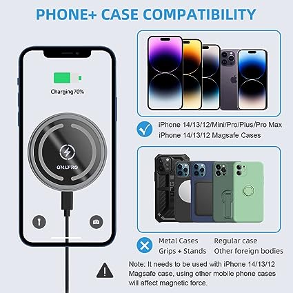 Does not? compatible with iPhone 11 Pro Max or earlier mNot compatible with non-magnetic cases, such as metal cases and accessories such as magnets, cards, keys and pop-up grips will interfere with charging.odels with magnetic cases.