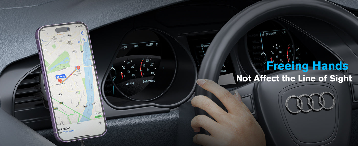 There is a spherical link at the bottom of the wireless magsafe car mount, which can switch the viewing angle at will, making it easy to drive.