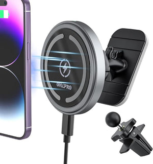 Magnetic Wireless Car Charger Mount, Stick on The Dashboard for MagSafe iPhone 14/14 Pro/14 Max/13/13 Pro/13 Pro Max/ 12/12Pro/Mini, Fast Ch