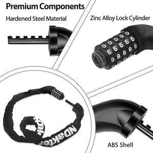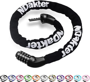 NDakter Bike Chain Lock 5 Digit Combination Heavy Duty Anti Theft Security Lock 3.2 4.27 5Ft