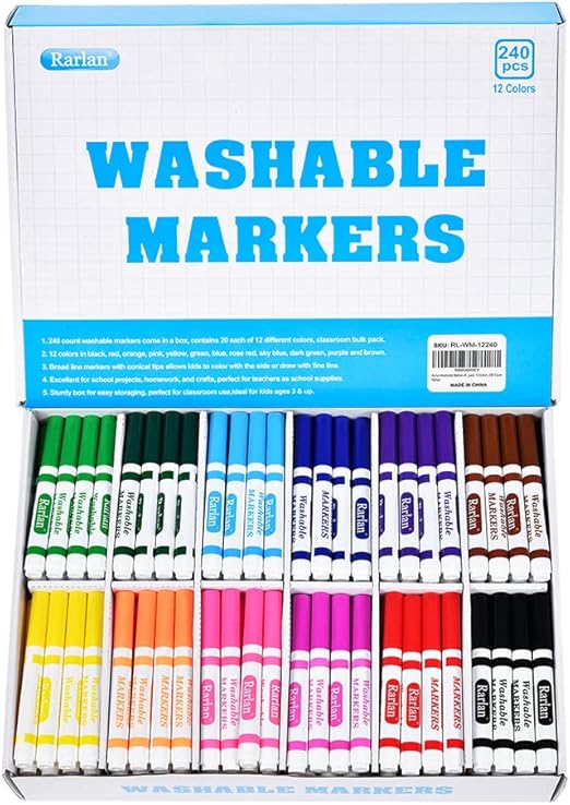 Rarlan Washable Markers Bulk, Markers for Kids, Classpack, 12 Colors, 240 Count