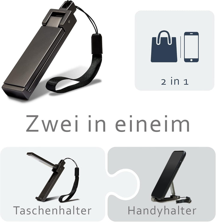 2-in-1 Design: Functions as a bag holder and smartphone stand.